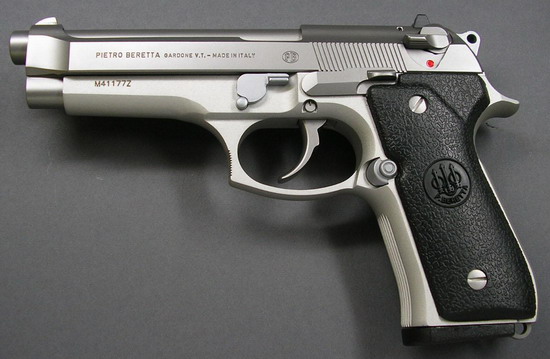 1985年由意大利伯莱塔公司研制的伯莱塔92F型手枪力压群雄,被美军选为新一代制式军用手枪、并在美军中重新命名为M9手枪。从此伯莱塔92F型手枪便“一抢走红”。该枪发射9毫米巴拉贝鲁姆弹,全长217毫米,空枪重0.96千克,初速333.7米/秒,有效射程50米。